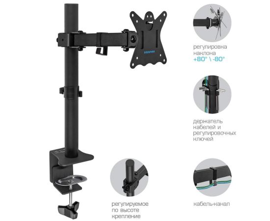 Кронштейн для мониторов Kromax CASPER-506 черный 10"-34" макс.10кг настольный поворот и наклон