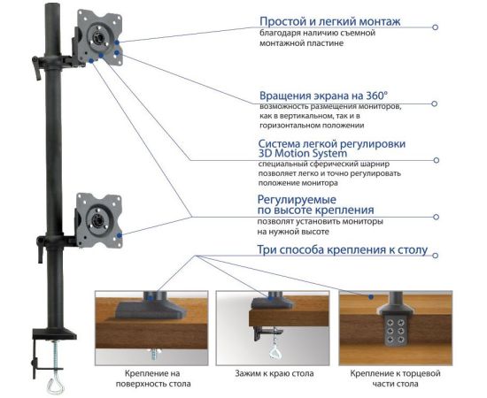 Особенности Вращения экрана на 360° возможность размещения мониторов, как в вертикальном, так и в горизонтальном положении.