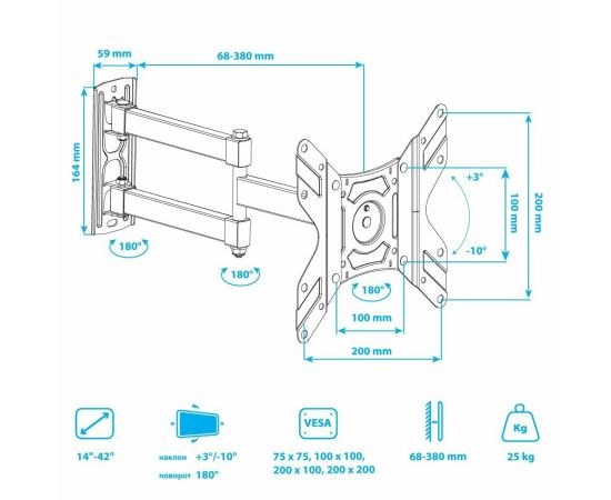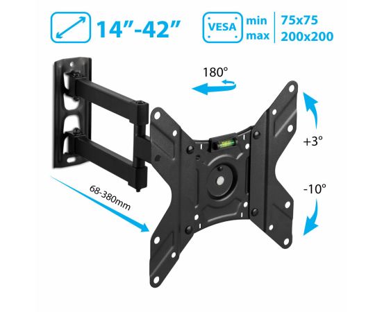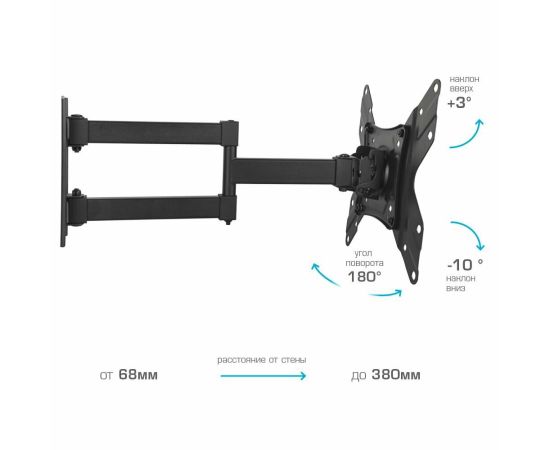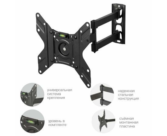Кронштейн для телевизора Arm Media LCD-205 14"-42", макс до 25 кг настенный, поворот и наклон черный