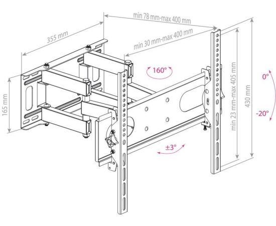 Вращение ТВ панели от вертикали стены от 0 до -20 грдс