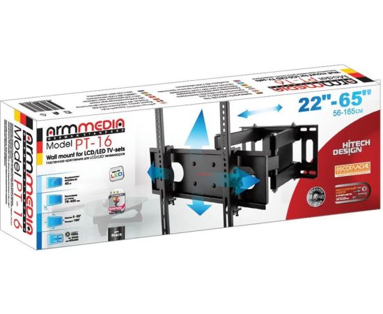 22"-65" Кронштейн Arm Media PT-16 черный до 40кг поворотно-выдвижной и наклонный