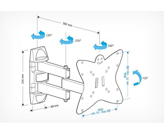 Поддержка крепления VESA 75×75, 100×100, 200×100, 200×200