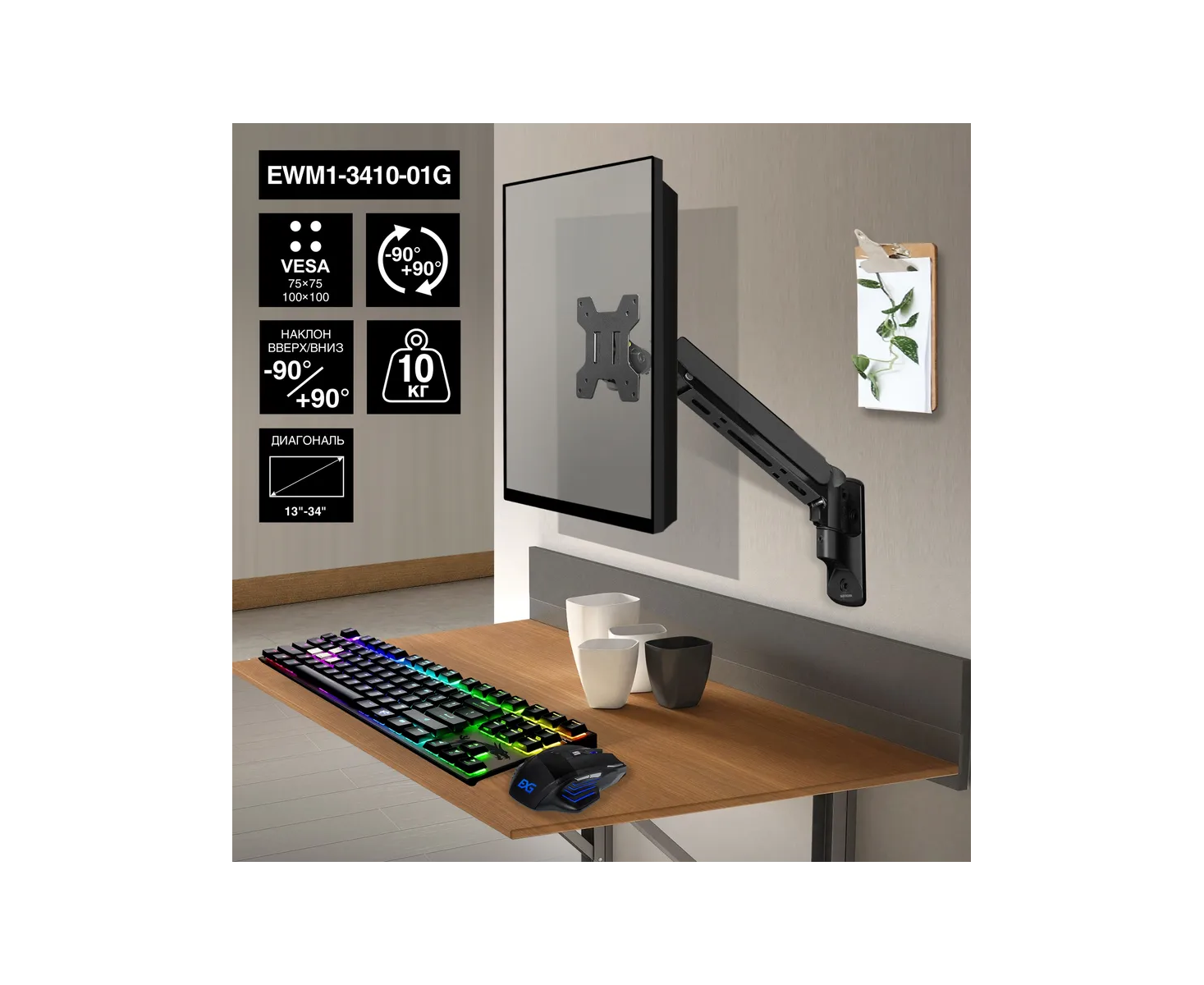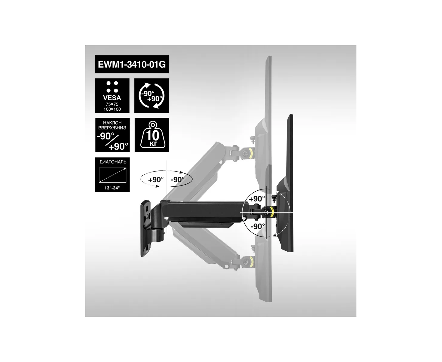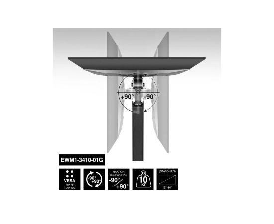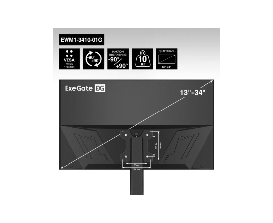 Кронштейн ExeGate EWM1-3410-01G EX297369RUS для одного монитора 13"-34", газовая пружина, VESA 75x75, 100x100, нагрузка 2-10кг