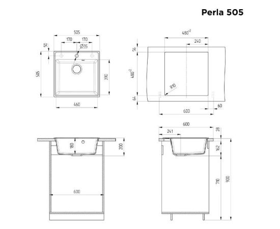 Кухонная мойка MAUNFELD Perla 505 MFQS-505LGR светло-серый