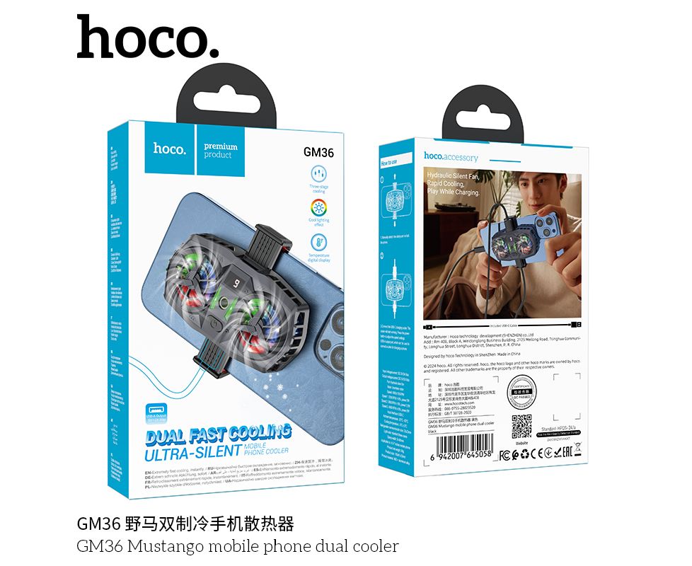Кулер игровой (охлаждение) для смартфонов HOCO GM36 Mustango mobile phone dual cooler (черный)