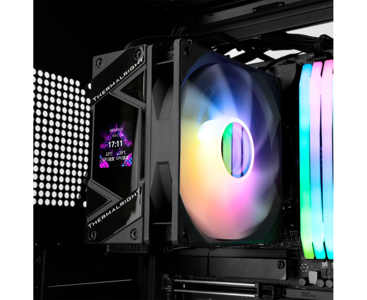 Кулер Thermalright Assassin Spirit 120 Vision Black ARGB (AS120-Vision-BL-ARGB) Soc-AM5/AM4/1200/1700/1851 черный 4-pin 27dB Al+Cu LCD Ret