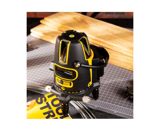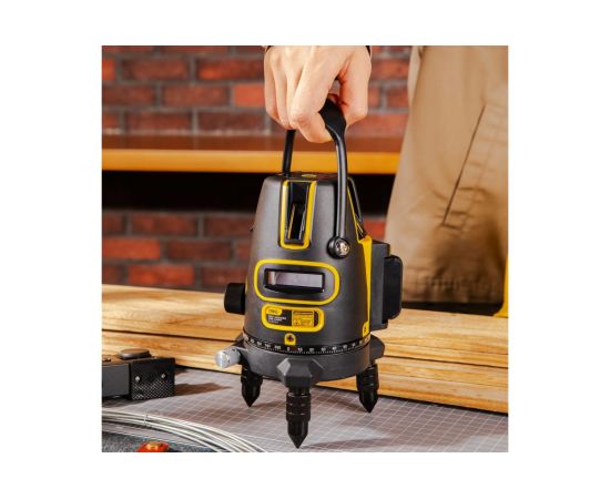 Проецирует 4 вертикальных и 1 горизонтальный луч, пять ярких точек и точку отвеса.
