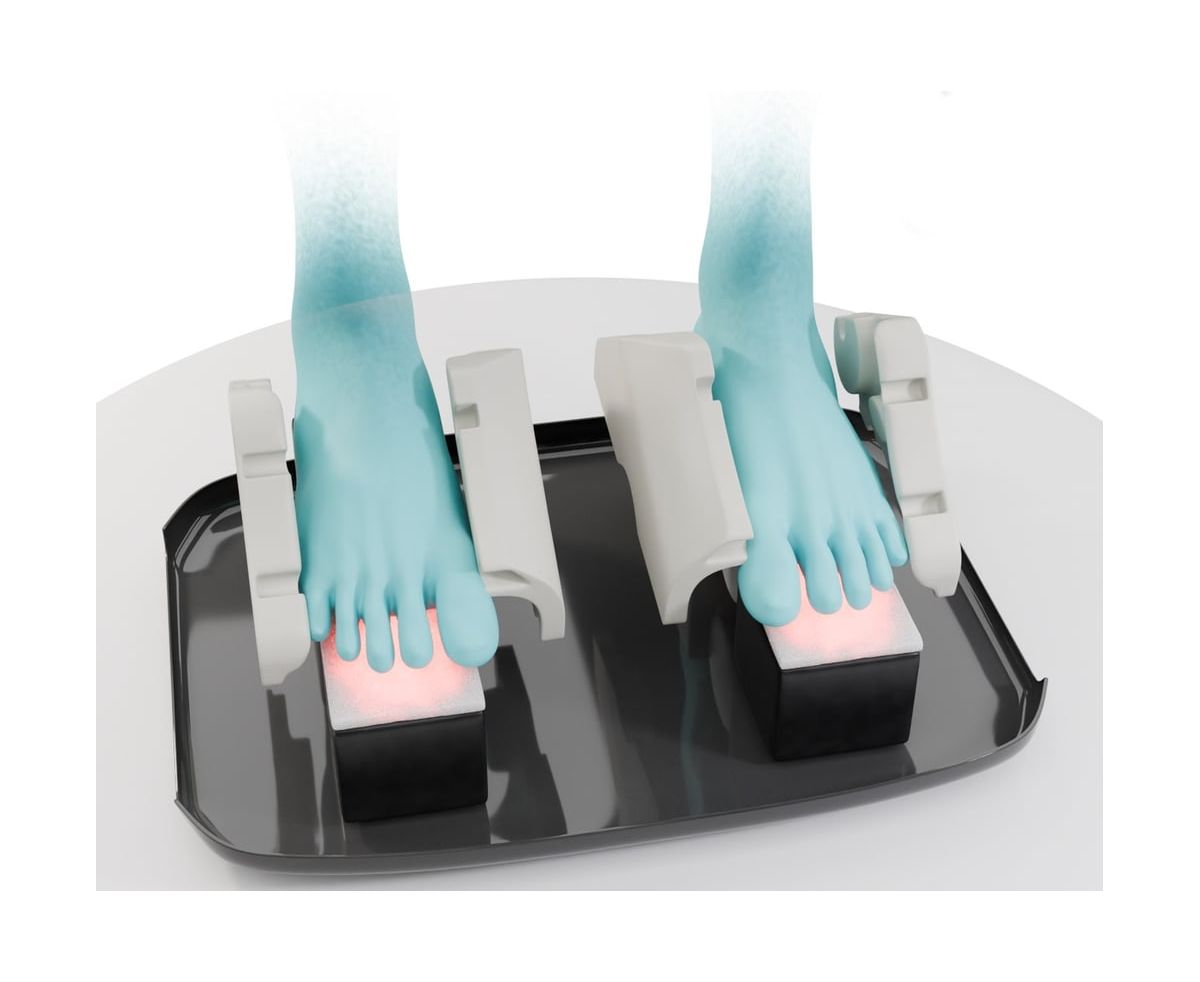 Массажные механизмы устроены таким образом, что при массаже происходит полный охват стопы с 3-х сторон: боковые поверхности, свод стопы, пальцы и подушечки пальцев, а также пятка.