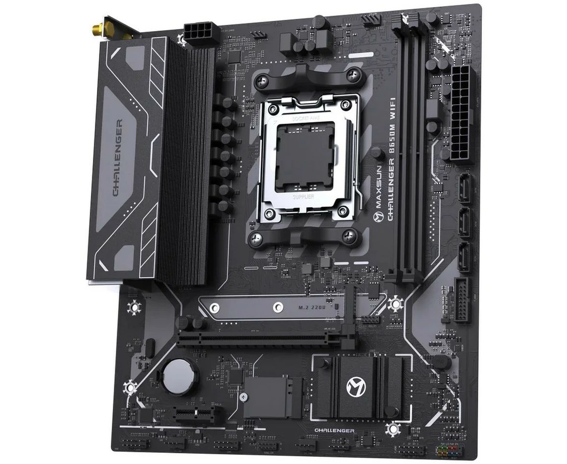 MB sAM5 Maxsun MS-Challenger B650M Wifi (6940709695456), AMD B650, 2xDDR5-4800 МГц, 1xPCI-Ex16, 1xM.2, Micro-ATX