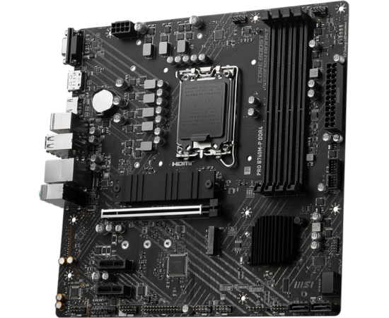 MB s1700 MSI Pro B760M-P DDR4, 4*DDR4, 1*PCIEx16, 2*PCIEx1, 2*M.2, 1*TypeC, , 3*USB3.2Gen1, 8*USB2.0, 4*SATA3.0, 1G, VGA, DP, HDMI, M-ATX, RTL