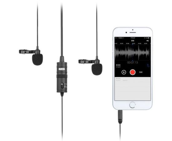 Микрофон BOYA BY-M1DM, петличный, Jack 3.5mm, черный, двойной всенаправленный (B)