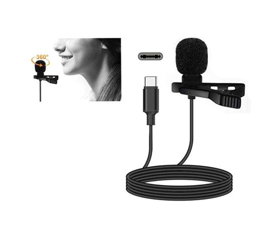 Микрофон CANDC DC-C3DM двойной, петличный, Type-C, 6 м, черный