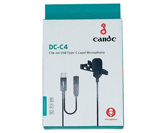 Микрофон CANDC DC-C4, петличный, Type-C+AUX, 6 м, черный