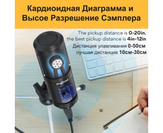 Корпус микрофона AU-PM461TR выполнен из металла, имеет штатив-подставку, которую удобно брать с собой. Комплексная защита капсюля в микрофоне позволит записывать видео вне помещения, что гарантирует чистый звук при воспроизведении и монтаже. Хороший звук с собой в дорогу Микрофон Maono AU-PM461TR подключается с помощью кабеля с разъемом USB, что говорит об универсальности устройства, так как такой разъем можно подключить к компьютеру, ноутбуку и различным звукозаписывающим устройствам при этом не требуется дополнительная установка драйверов, так как микрофон совместим с большинством операционных систем. Штангу можно подключать к другим USB микрофонам. Такое устройство гарантирует вам комфорт во время использования в любых условиях.