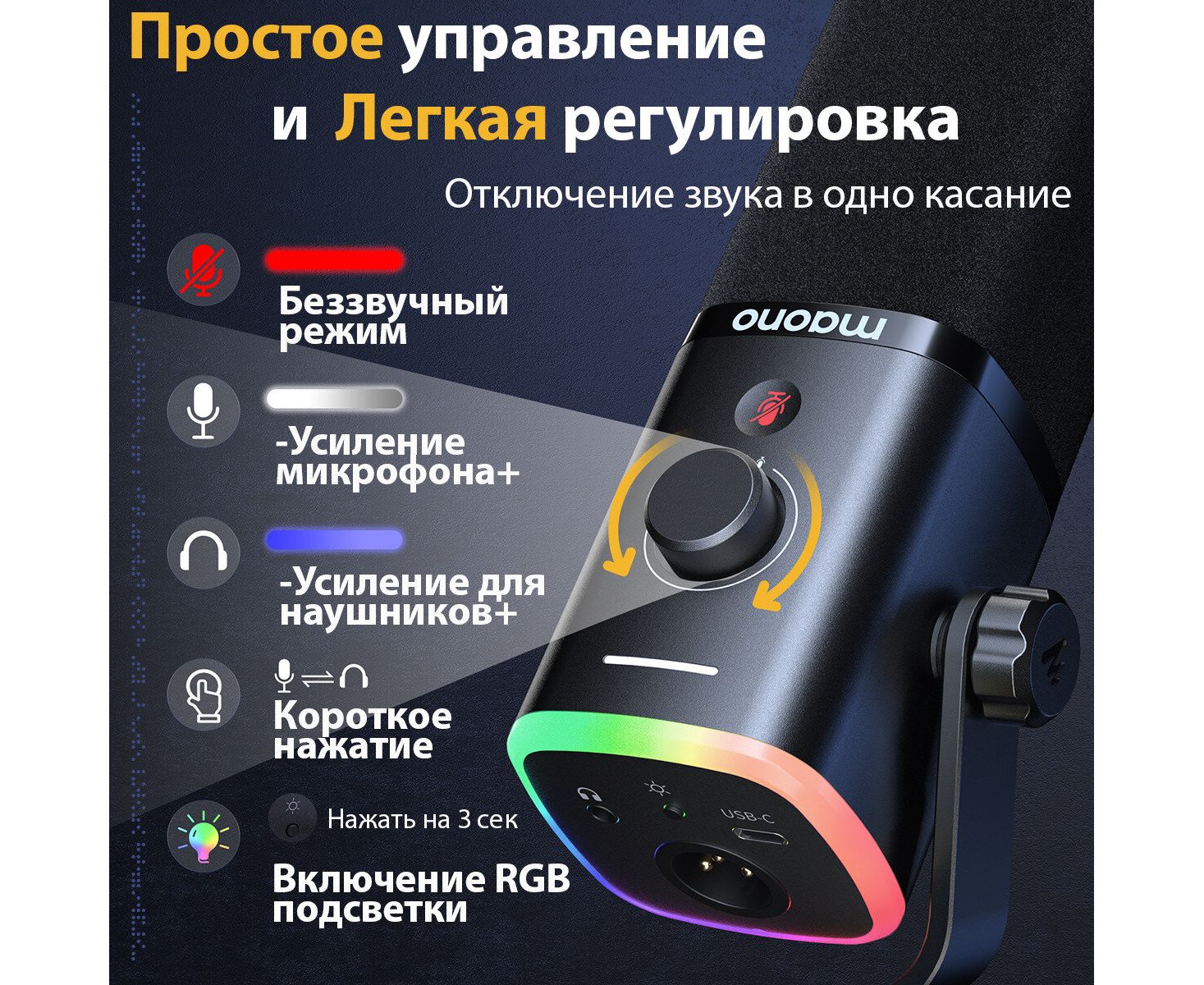 RGB-подсветка, выход на наушники, кнопка отключения микрофона