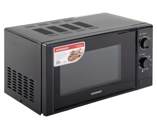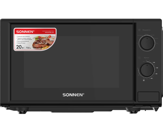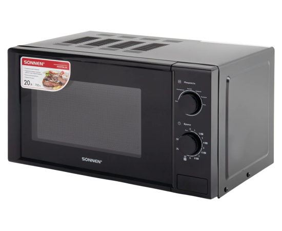Микроволновая печь SONNEN MW2070BL-6M, 20л, 700Вт, таймер, механическое управление, кнопка, черная