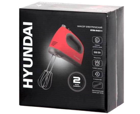 Миксер ручной Hyundai HYM-H4511 500Вт красный/серый