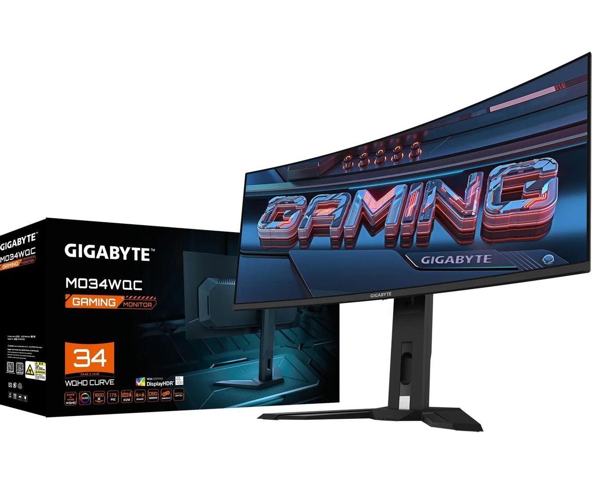 Монитор Gigabyte MO34WQC (20VM0-MO34WQ1BT-1EKR) черный OLED LED 21:9 HDMI матовая HAS 250cd 178гр/178гр 3440x1440 175Hz DP UW USB 9.3кг