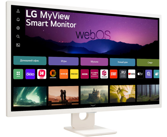 Монитор LG MyView 32SR50F-W LCD 31.5'' FHD Smart Monitor, IPS, 250cd/m2, 16:9, 5мс (GtG), 1200:1, 60Hz, 178/178, speakers 5Wx2, внешний БП, 2xHDMI