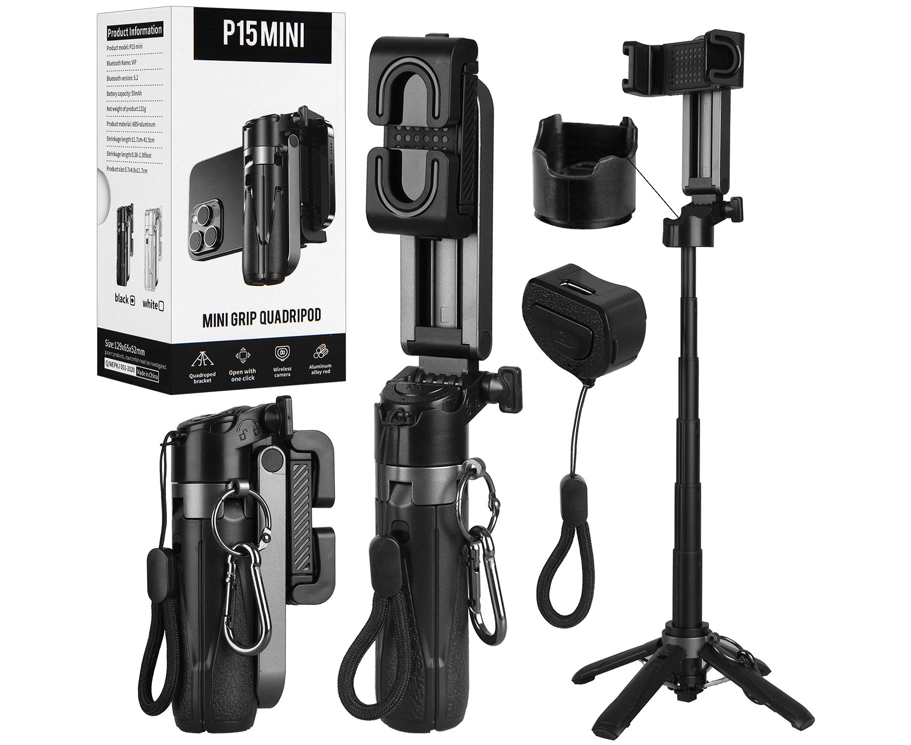 Монопод-трипод для селфи R58 185см, пульт Bluetooth (Black)