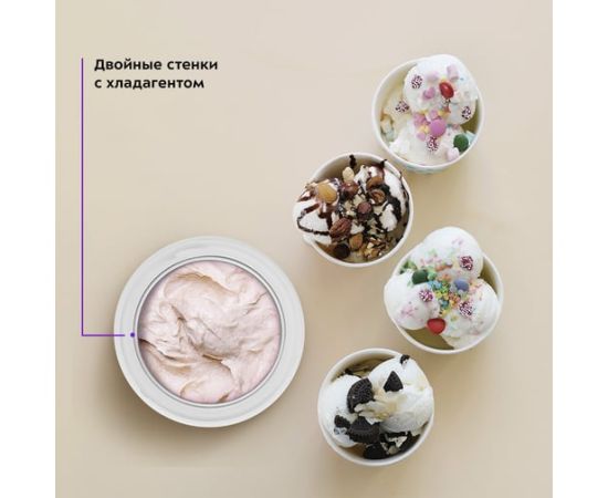 Полуавтоматическая мороженица КТ-1835 поможет вам приготовить настоящее мороженое из натуральных продуктов, а также сорбет, джелато и замороженный йогурт. Мороженица снабжена системой смешивания и имеет чашу c хладагентом для охлаждения мороженого во время приготовления.
