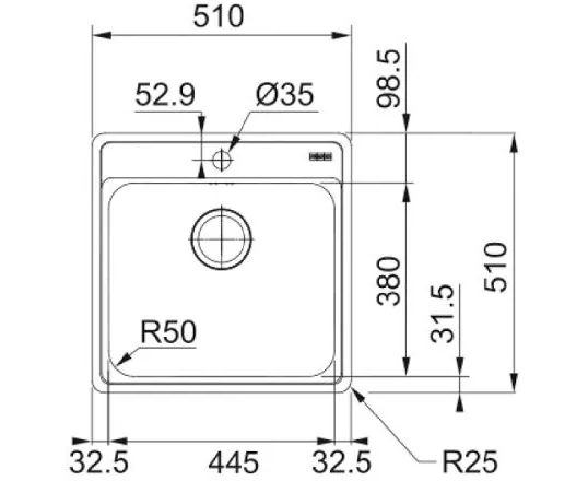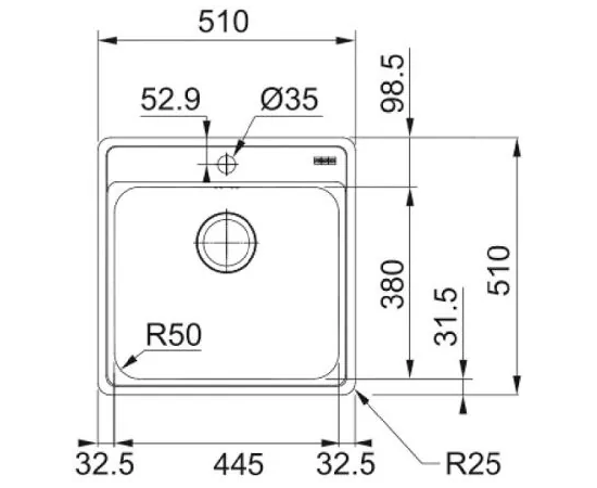 Размер мойки 510 х 510 мм