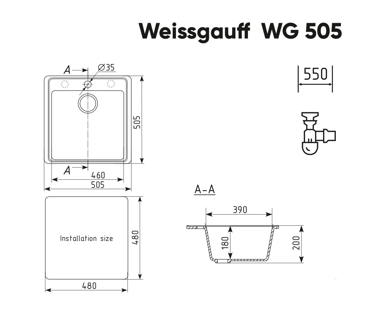 Габариты мойки, мм: 505 х 505 х 200