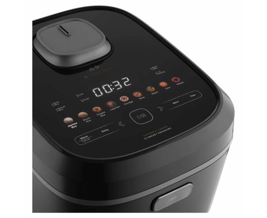Рисоварка оснащена 13 автоматическими программами, включая приготовление супа, молочной каши, выпечки и приготовление на пару. Это позволяет приготовить разнообразные блюда из риса, а также другие продукты на пару.