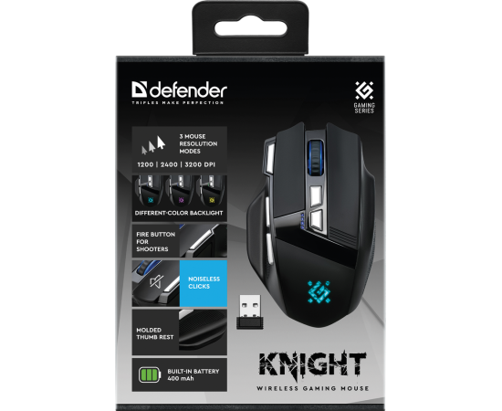 Мышь DEFENDER Knight GM-885 8кнопок,3200dpi,400 мАч 52885 (черный)