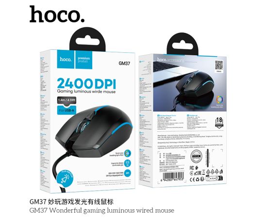 Мышь HOCO GM37 Wonderful игровая с подсветкой (черный)
