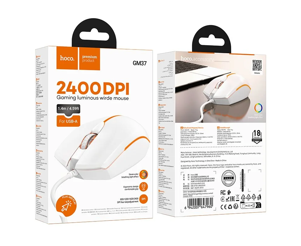 Мышь игровая HOCO GM37 Wonderful gaming luminous wired mouse (белый)