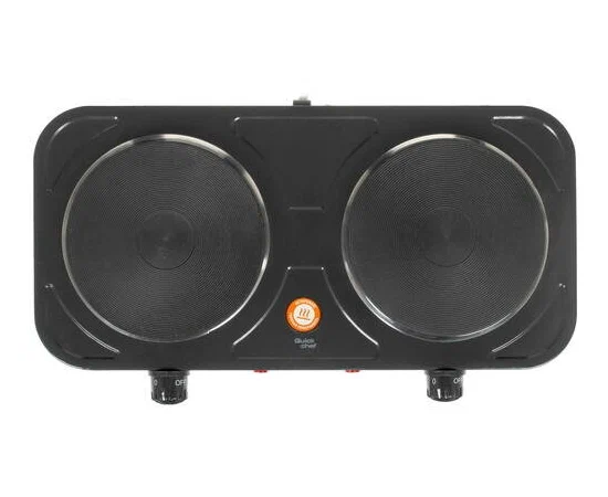 Общие характеристики Цвет черный Тип варочной панели электрическая Настольная есть Высота 6 см Глубина 22 см Ширина 42 см Тип управления механическое Класс энергопотребления B Максимальная потребляемая мощность 2000 Вт Номинальная мощность 2 кВт Переключатели поворотные Возможность работы от газового баллона нет Варочная панель Общее количество конфорок 2 Число электрических конфорок 2 Характеристики конфорок Конфорки галогеновая, двухконтурная, индукционная, трехконтурная, экспресс-конфорка, электрическая, электроконфорка Число электроконфорок 2 Материал рабочей поверхности эмалированная сталь Духовка Тип духовки нет Умный дом Протокол связи отсутствует Тип соединения устройств проводное