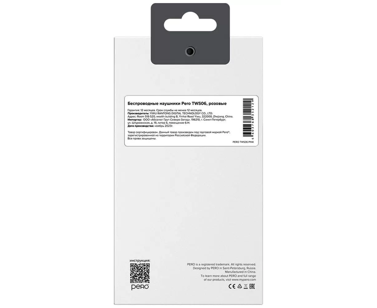 Наушники беспроводные PERO TWS06 Comfort (PTWS06CP) Pink