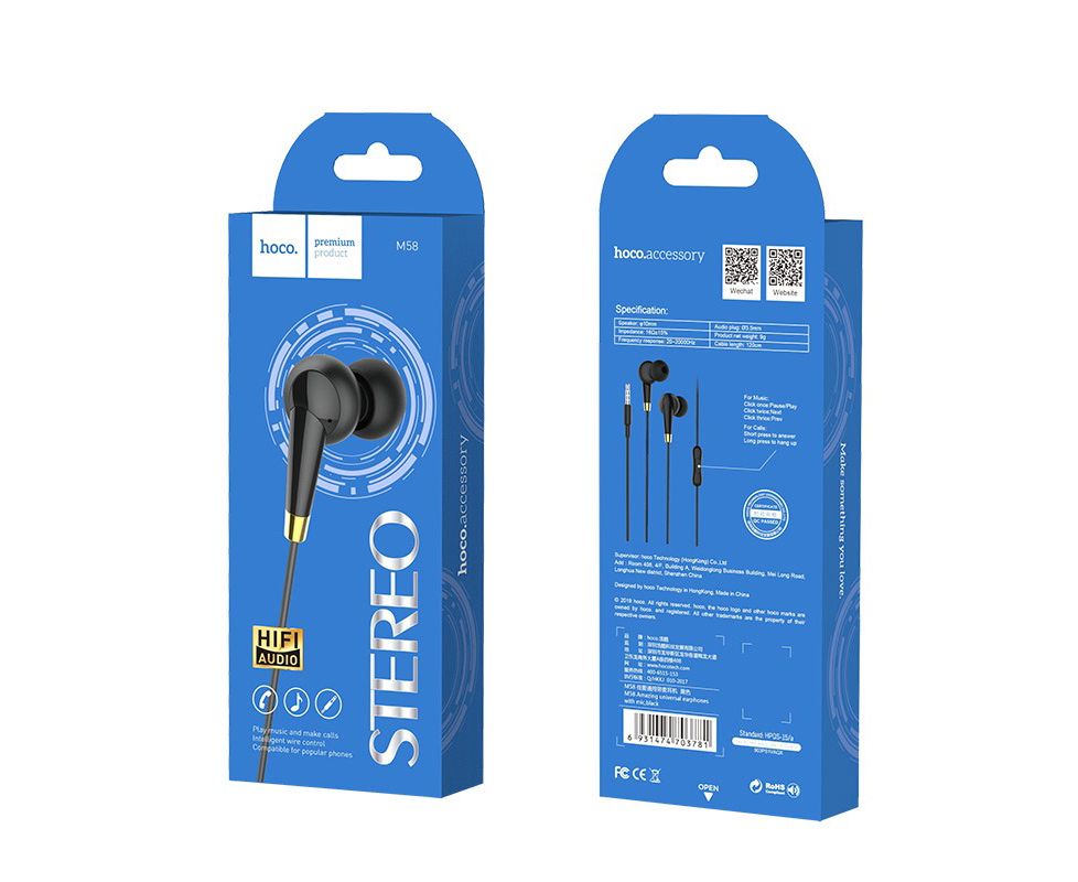 Наушники HOCO M58 Amazing universal earphones with mic black (о)