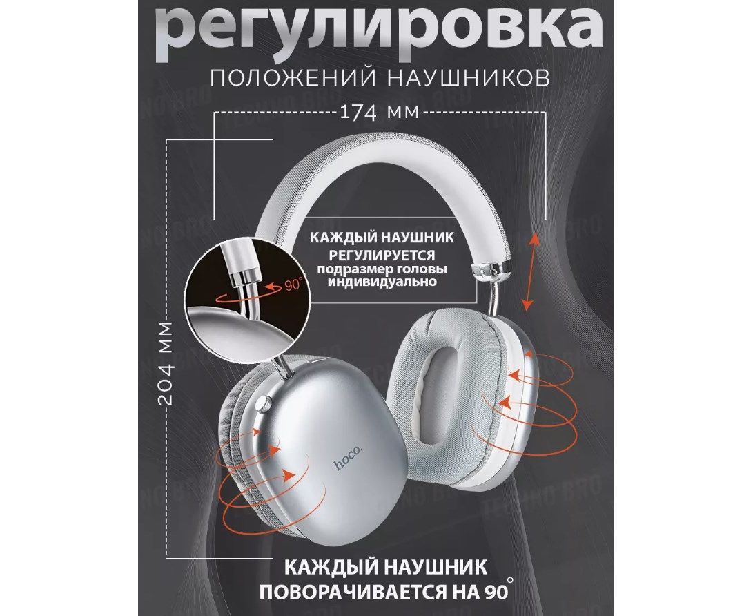 Наушники Hoco W35 Max ANC серебристый