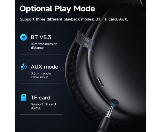 Наушники полноразмерные bluetooth HOCO W35 Max Auspicious ANC noise reduction BT headphones (черный)