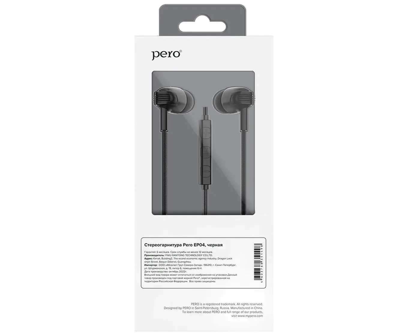 Наушники проводные PERO EP04MBL черный