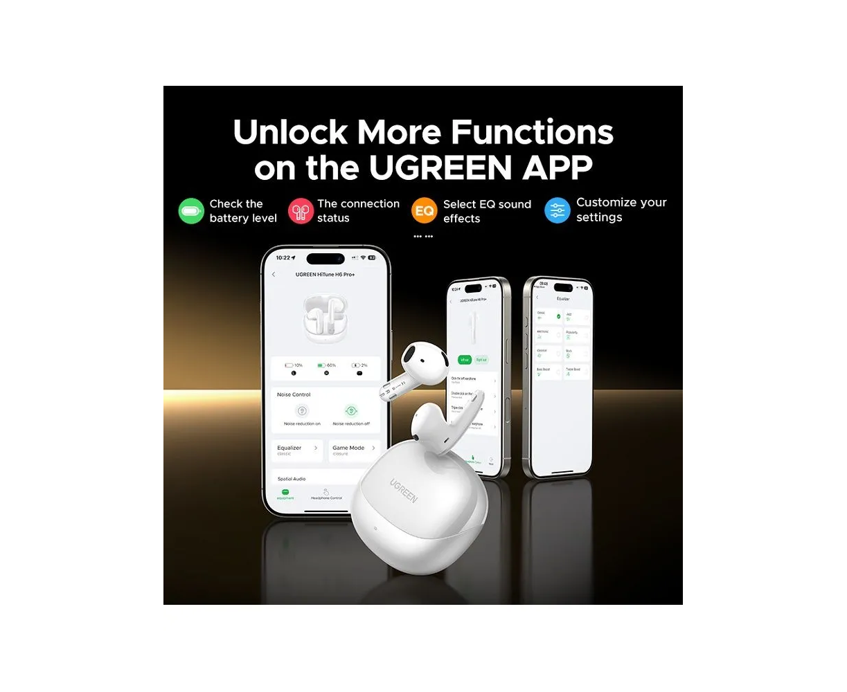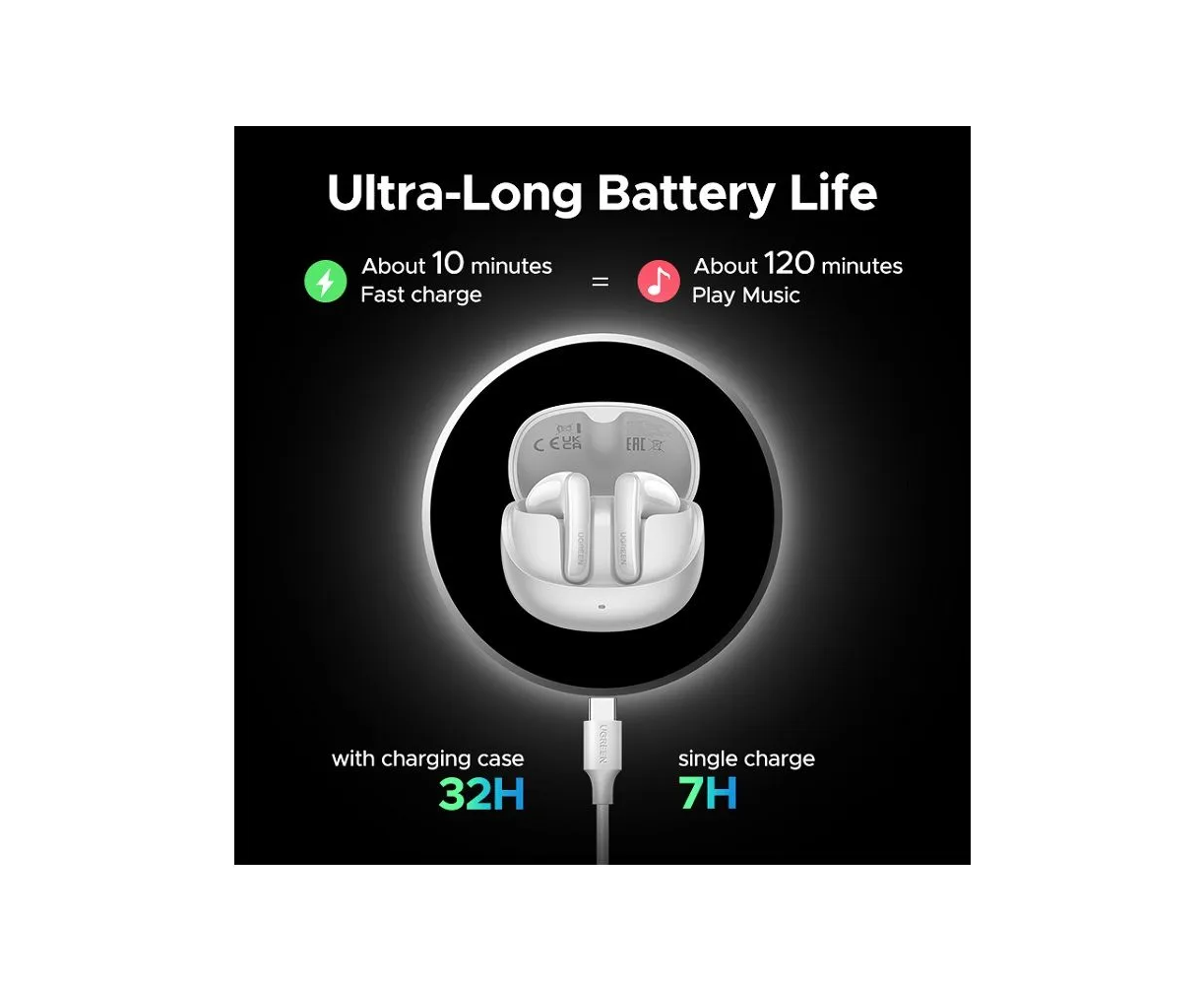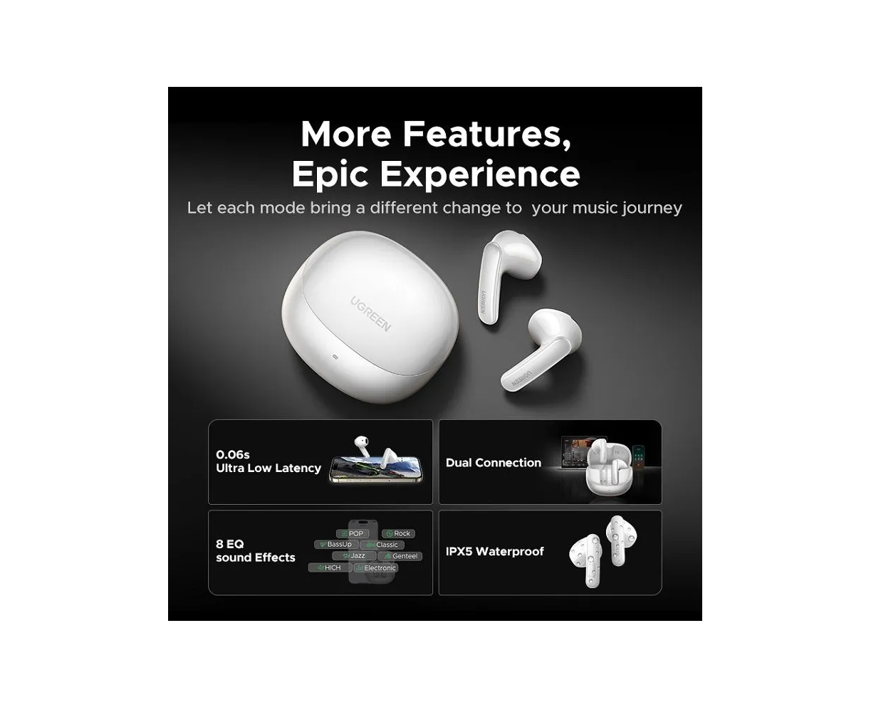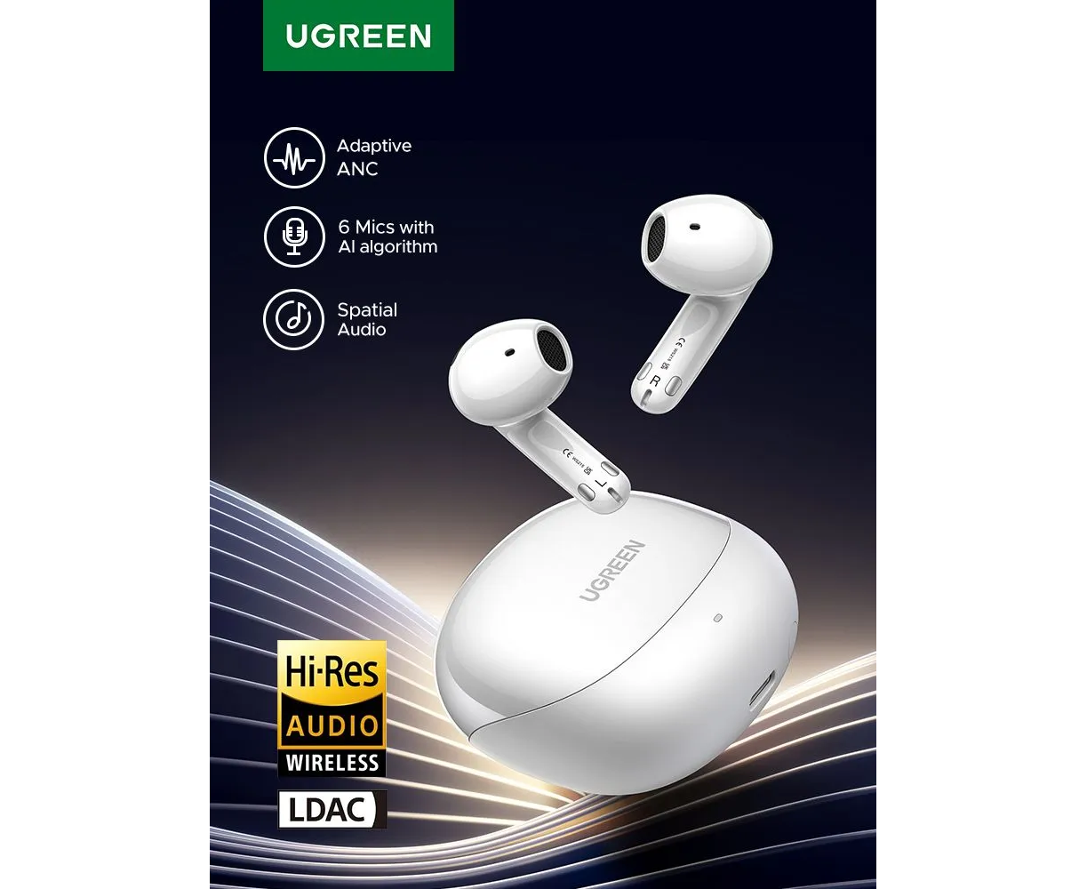 Наушники UGREEN WS215 (65385) LightBuds Pro Bluetooth 6.0 Earphone 6 Mics With Noise Reduction White