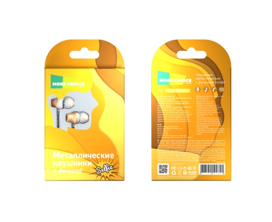 Наушники вакуумные AUX разъём с МК и рег.громкости длина 1.2м More Choice P61 (White Gold)