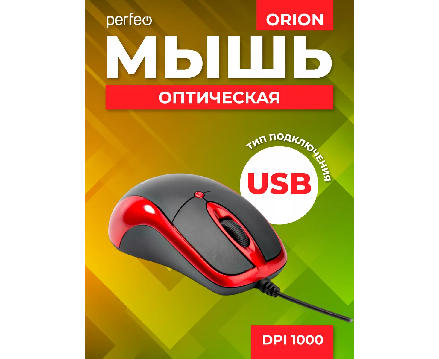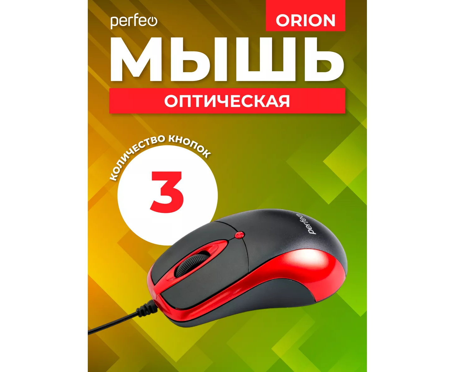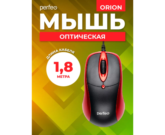 Оптическая мышь Perfeo "ORION", 3 кн, DPI 1000, USB, чёрный/красный