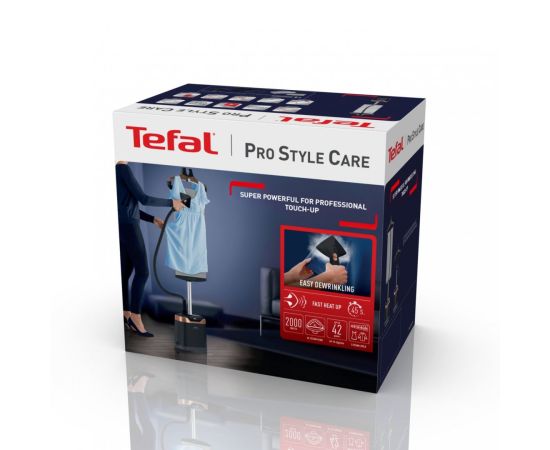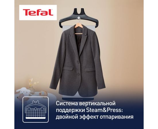 Для фиксации текстильных изделий модель оснащена вешалкой. Благодаря противокапельной системе на вещах не образуются мокрые пятна. Вертикальный отпариватель Tefal IT8480E1 мощностью 2000 Вт готов к использованию через 45 секунд после включения. Для обработки большого количества одежды без остановки в устройстве предусмотрен резервуар для воды объемом 1,3 л. Съемная конструкция облегчает наполнение. Регулируемая по высоте телескопическая стойка делает процесс отпаривания более удобным. Для безопасной эксплуатации в комплекте поставляется термостойкая рукавица.