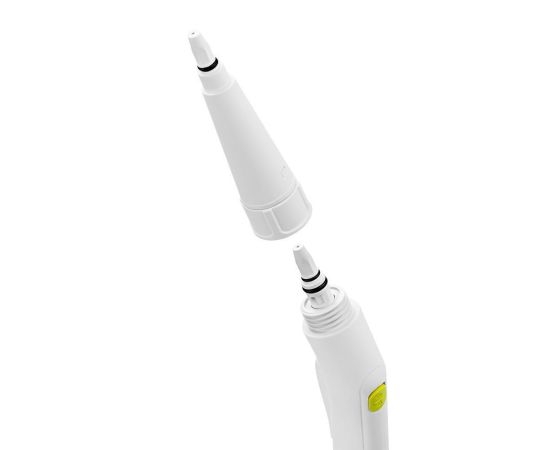 Можно использовать пароочиститель как с насадками, так и без насадок. Для подсоединения струйной насадки установите ее на паровое сопло пистолета до упора и поворачивайте кольцо струйной насадки справа налево для фиксации.