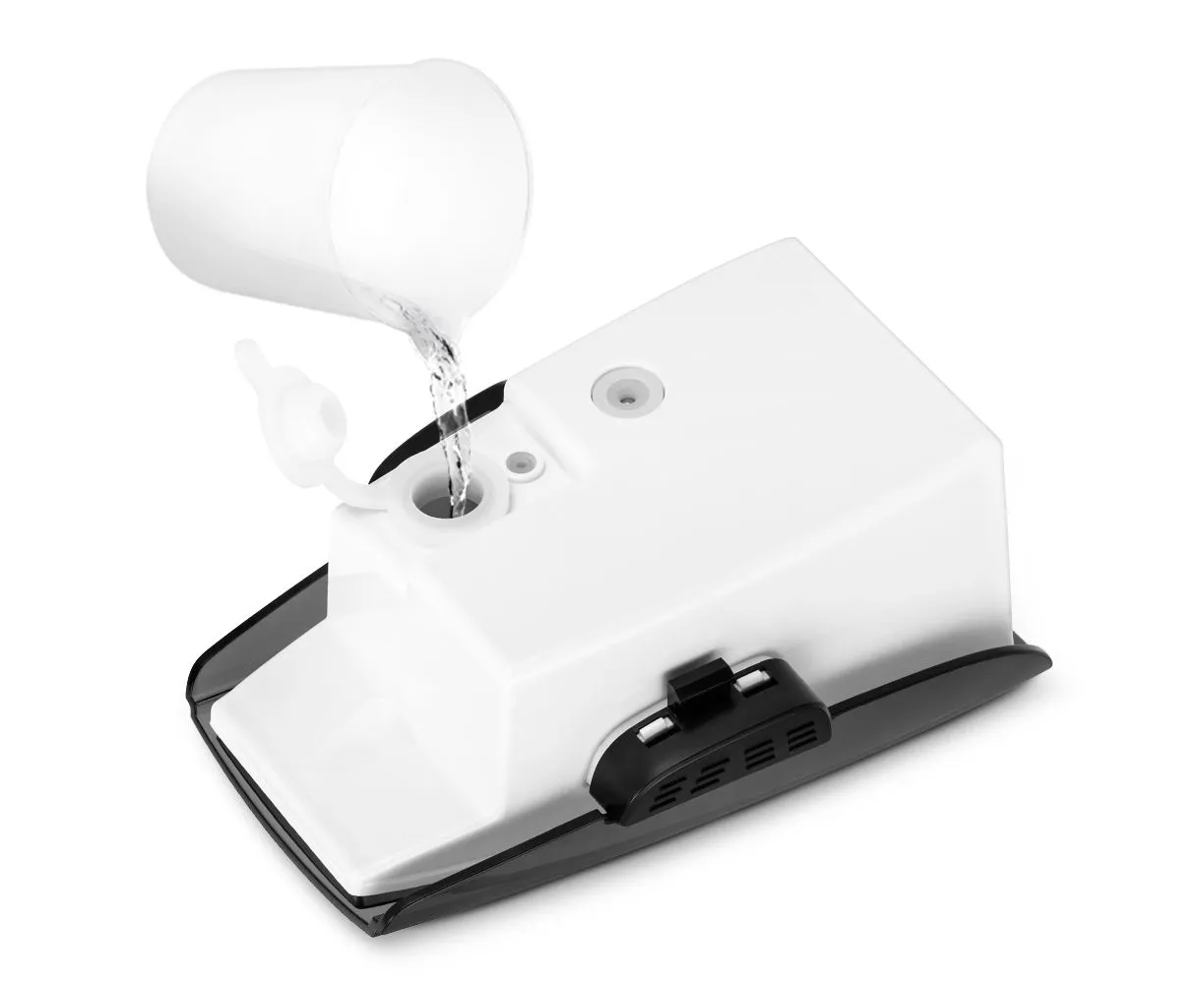 Для уменьшения шанса протекания, система пополнения воды в паровой швабре укреплена фиксаторами с двух сторон. Вливайте воду с помощью мерного стакана и воронки, чтобы не пролить ни капли