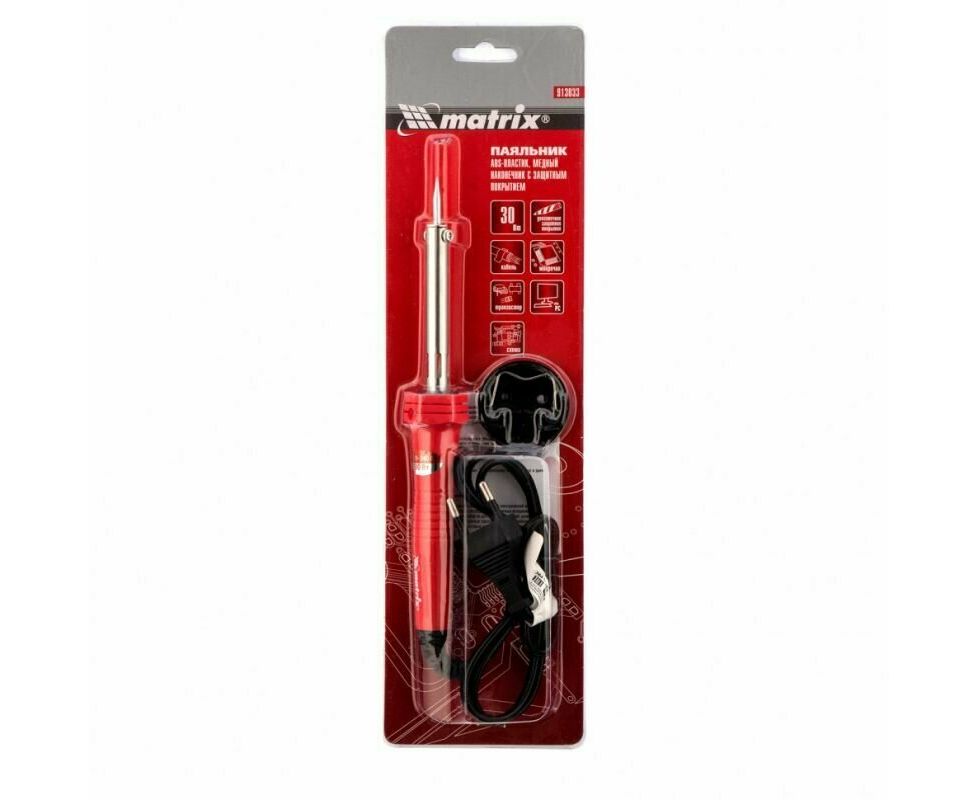 Паяльник Matrix 913033 пласт. ABS с пониж. теплопровод, медный наконечник с долговеч. покрытием, 30W