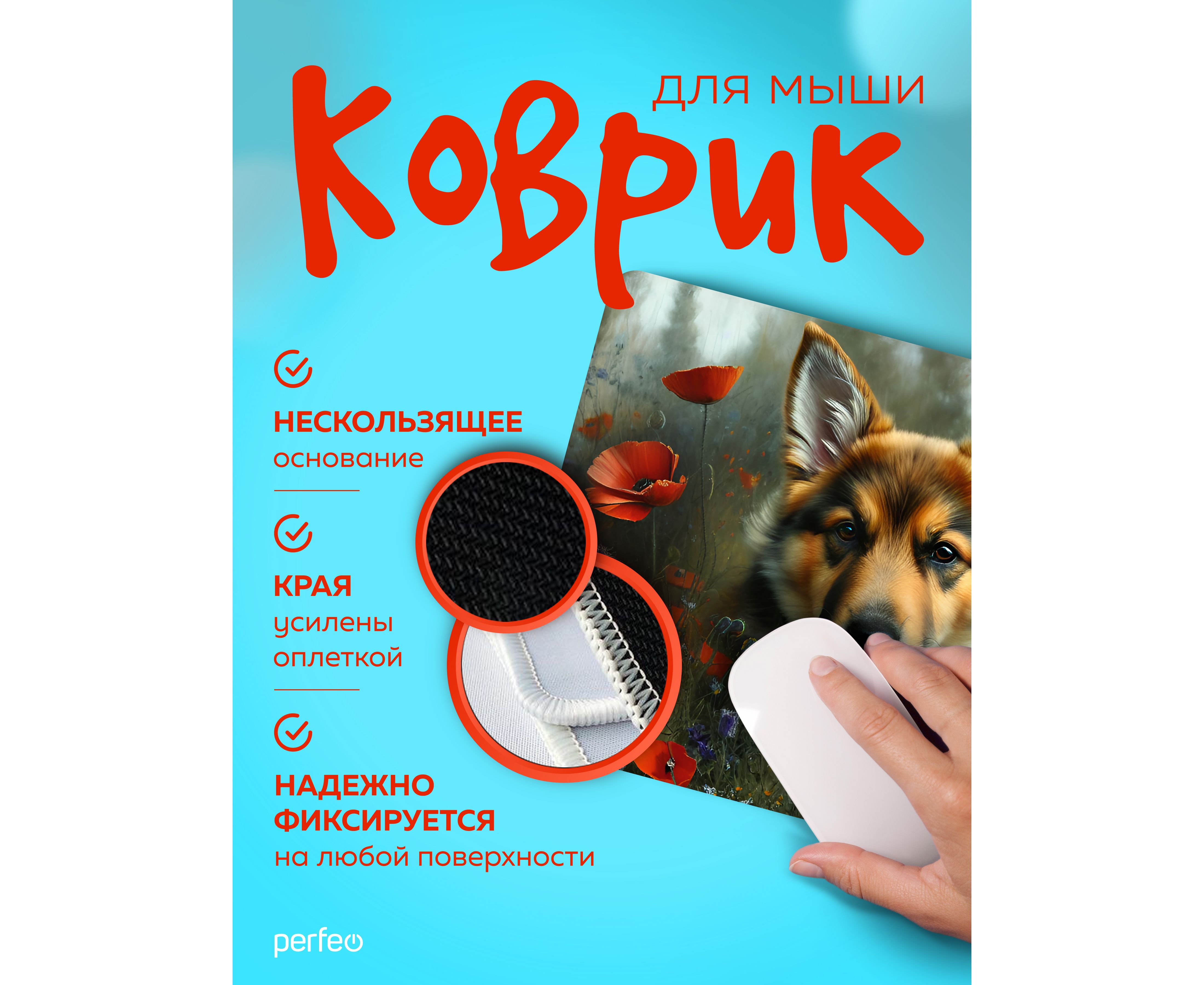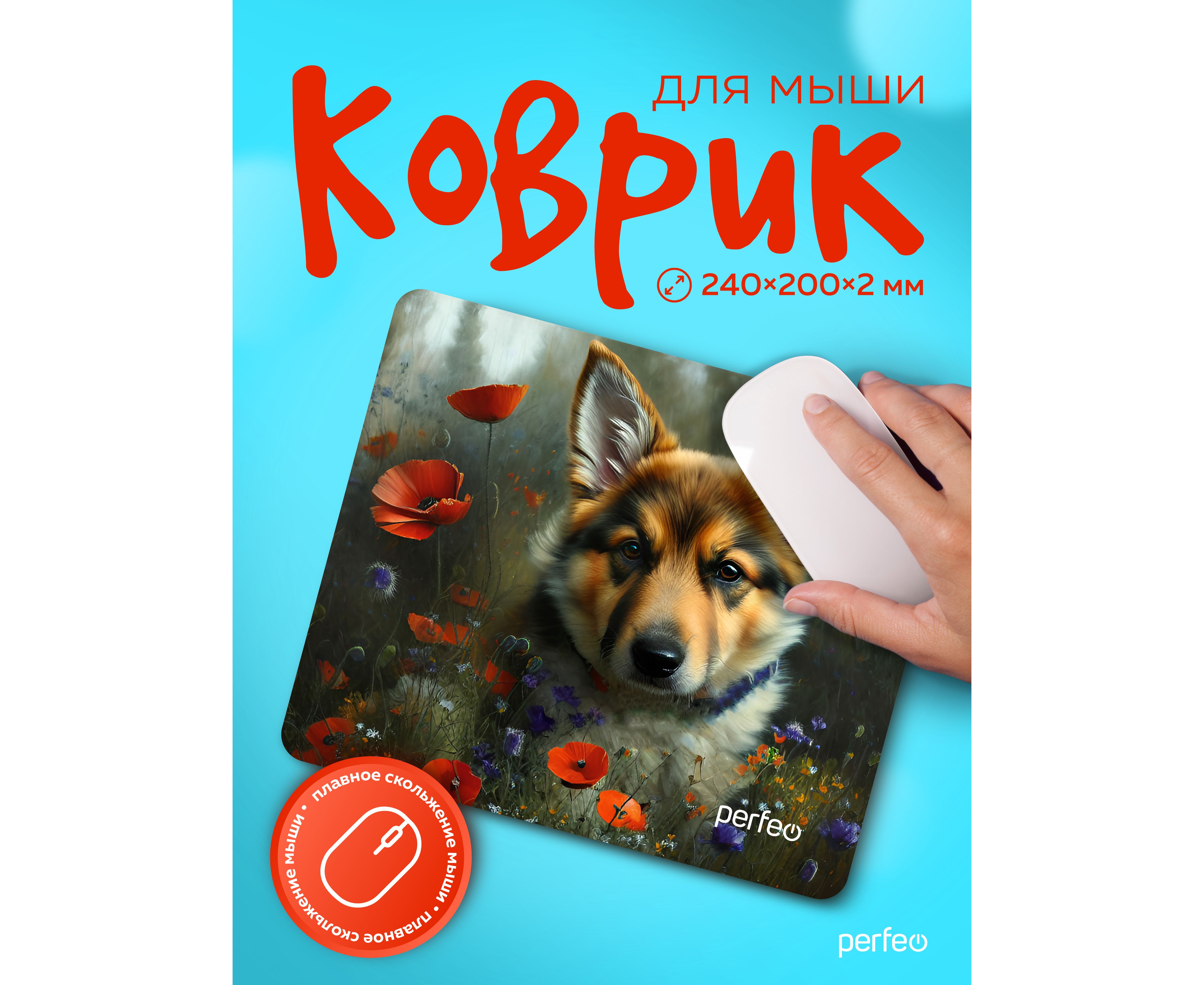 Компьютерный коврик для мыши из серии DOG обладает гладкой тканевой поверхностью, которая обеспечивает точность и плавность движения - мышь скользит быстро и четко. Оверлочная строчка по краю увеличивает износостойкость и срок службы. Нескользящая резиновая основа надёжно фиксирует коврик на столе. Небольшой вес и хорошая гибкость позволят Вам взять коврик для мыши куда угодно для комфортного пользования ноутбуком. Качественный принт будет вас долгое время радовать. Подходит для оптических и лазерных мышей с любой чувствительностью и любым типом сенсора.