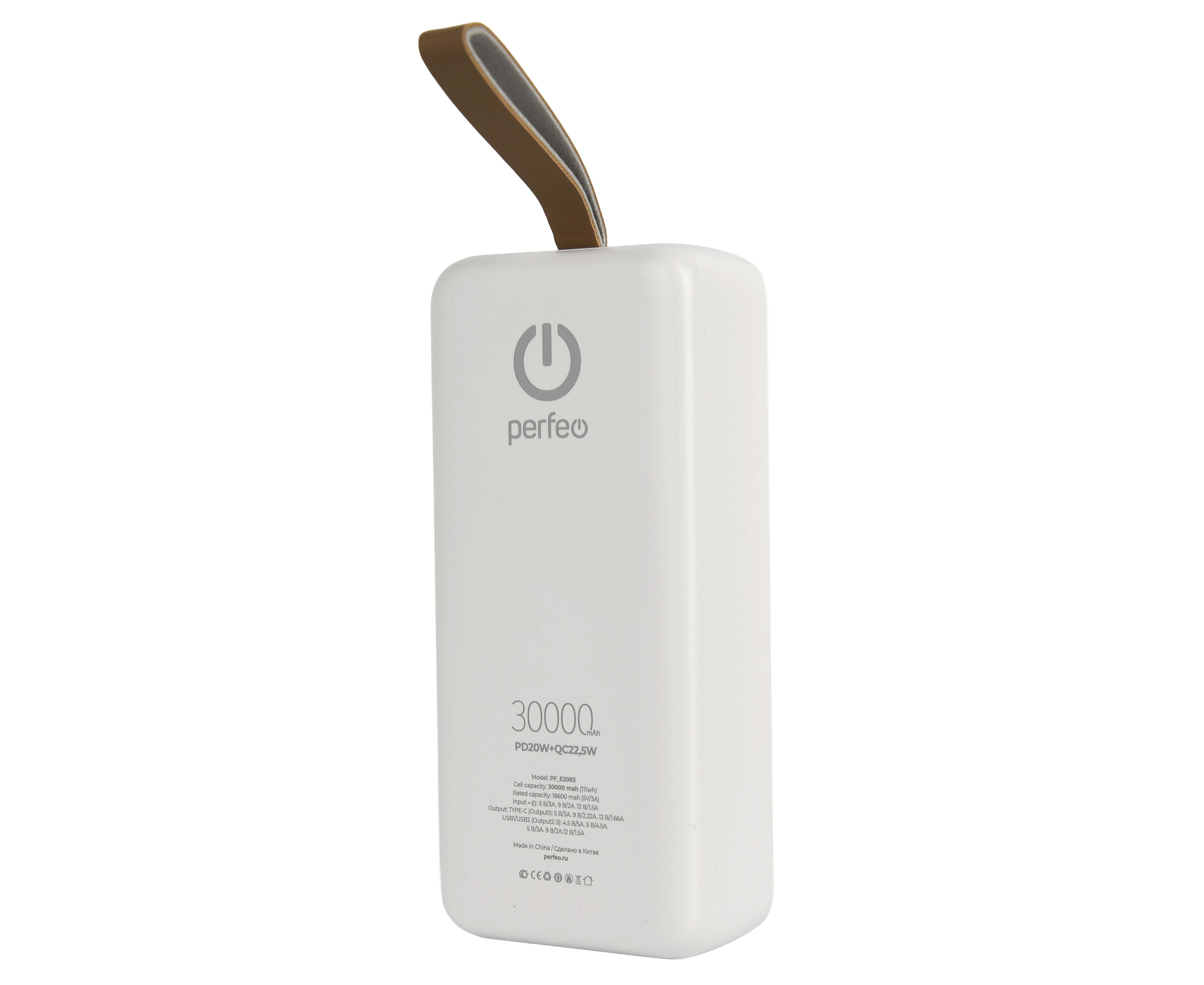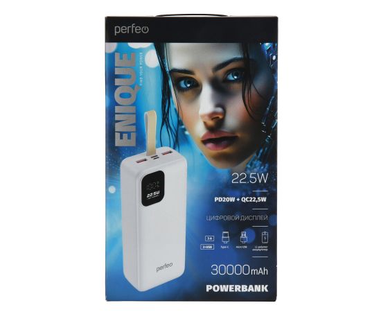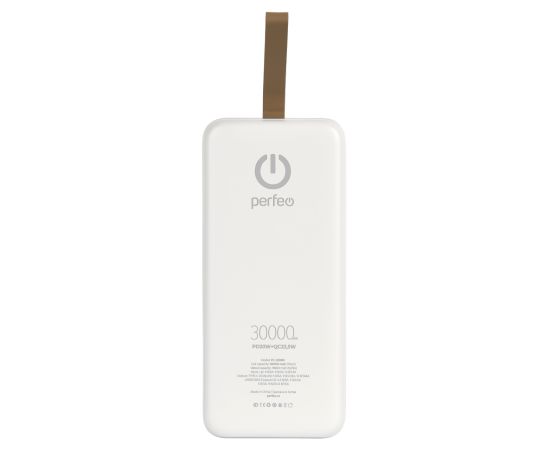 Повербанк Perfeo 30000 mAh/LED дисплей/PD + QC 3.0/Type-C/2 USB/Выход: 5A, max 22.5W/ Белый