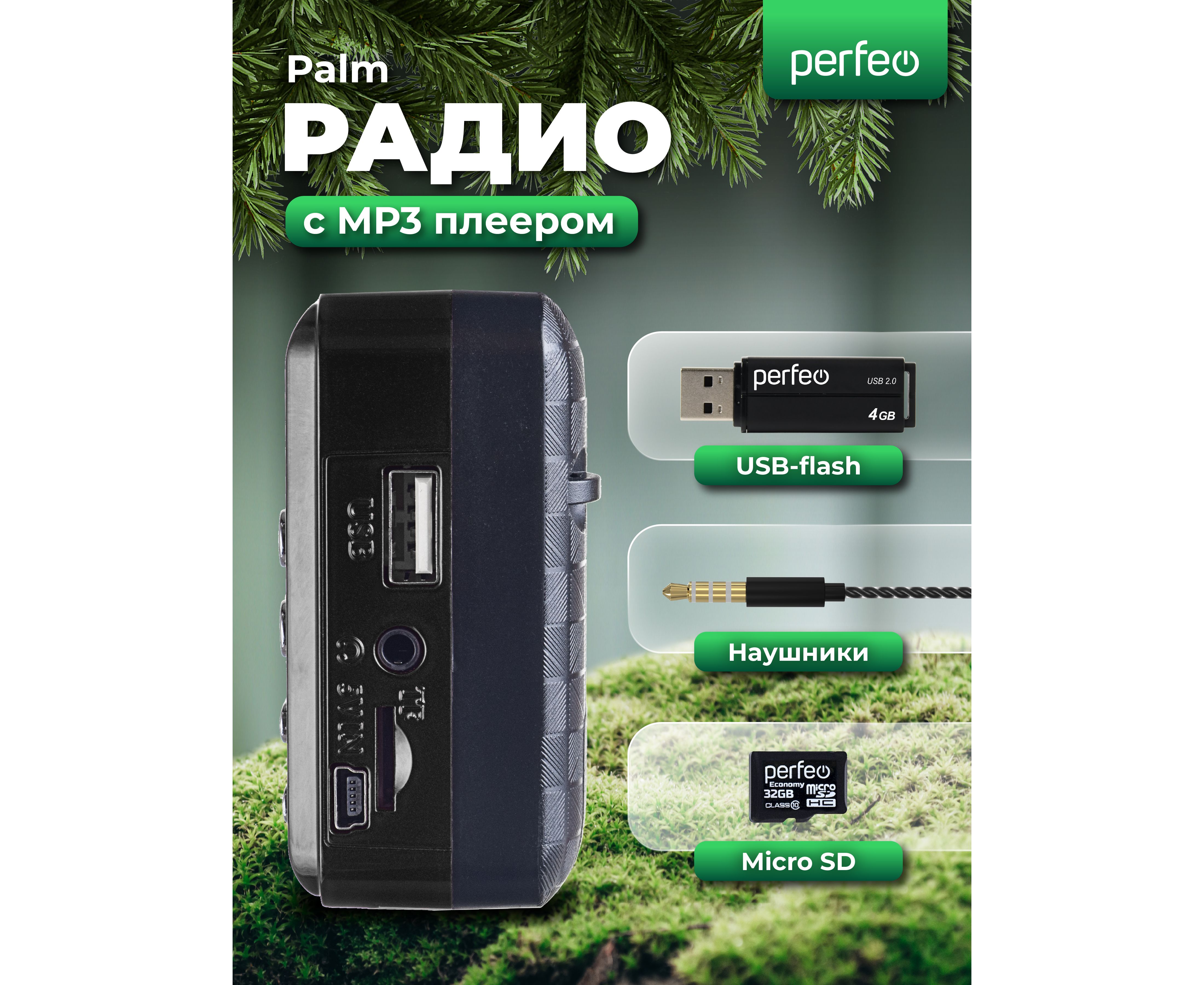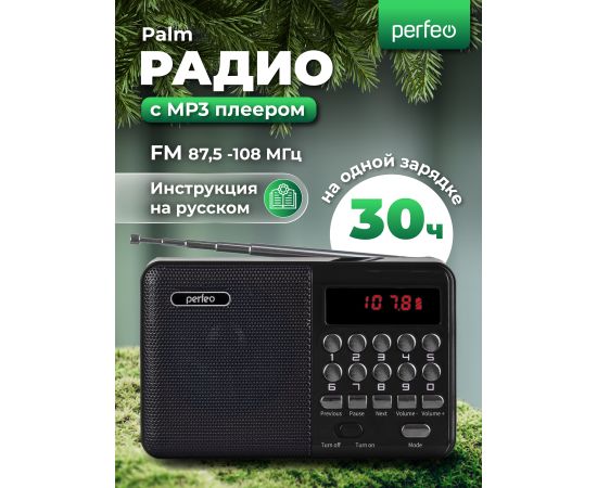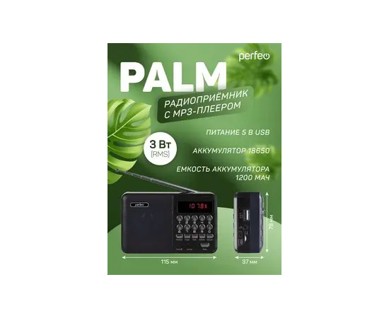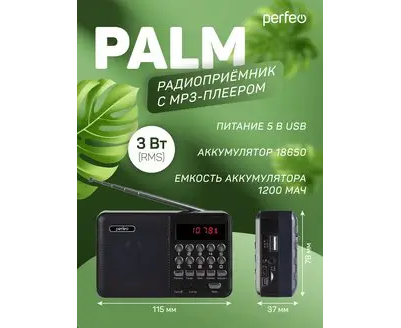 Модель Радиоприемник цифровой Perfeo PALM FM+ 87.5-108МГц/ MP3 / USB / MicroSD