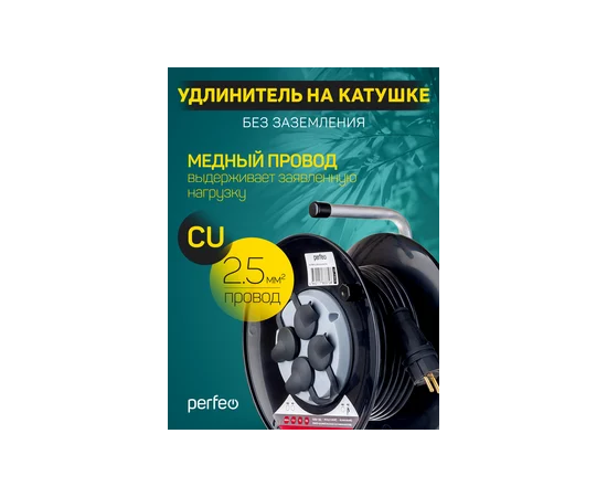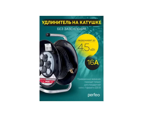 Удлинитель на катушке без заземления Perfeo "RU POWER" 20м 4гн 16А ПВС 2х2,5 IP44 (РБК16).