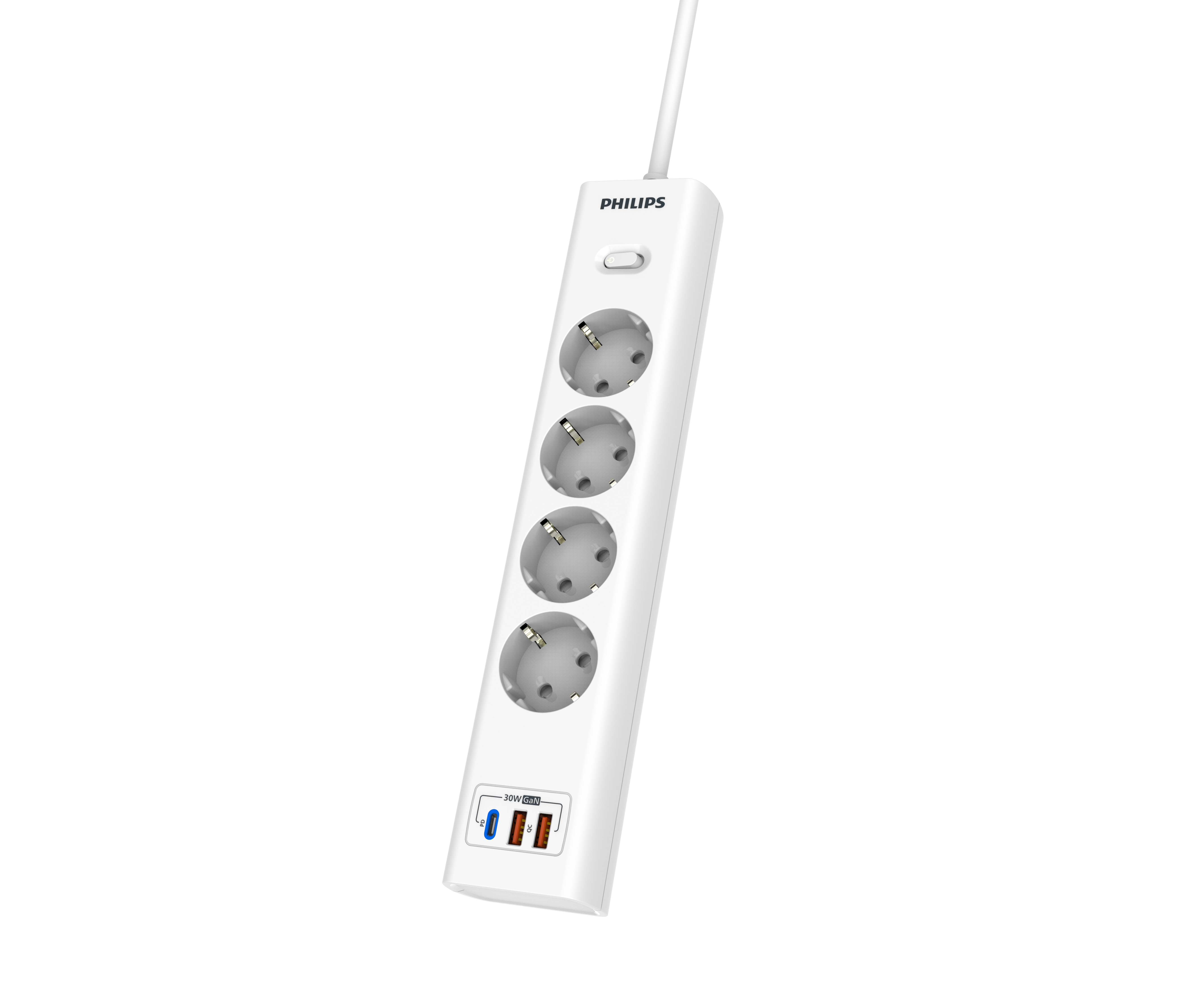 Philips сетевой фильтр 4 Розетки с USB PD/QC3.0 (5/9/12В) 30Вт кабель - 3M белый