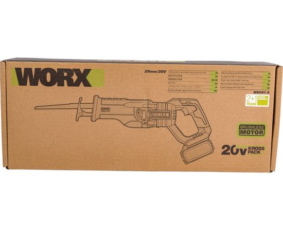 Пила сабельная WORX Professional WU501.9 аккумуляторная, бесщеточная, 20В, 29мм, без АКБ и ЗУ